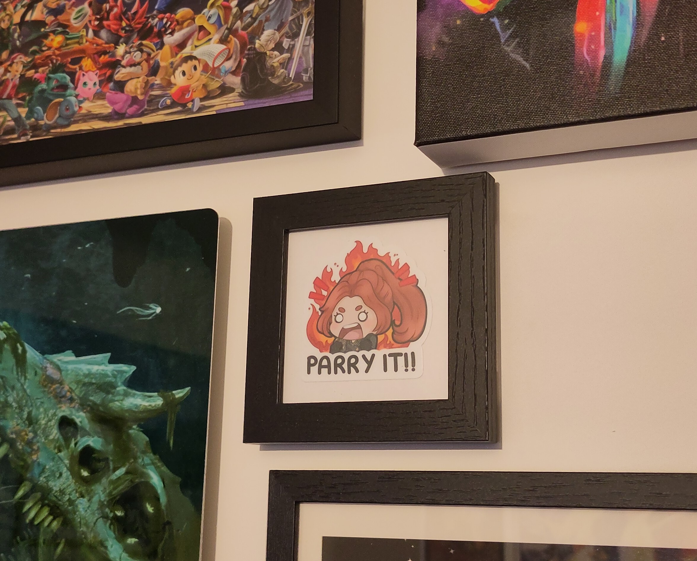 I’m also a big fan of “barks” that are done particularly well. A “bark” is where a character says something quick that is often repeated when some mechanic triggers in game. Some of these repeated lines of dialogue just tickle me and stick with me. I can’t quite place what makes the individual line work so well, but they’re always simple and it’s somewhere in the delivery. Clair Obscur has a wealth of them that stuck with me: “Parry it!” - Maelle, “For those who after” - Gustave, “Maximum damage” - Verso, “Some violence, yes?” - Monoco. For that first one, I even went and found someone else online who had enjoyed it so much and made some art of it for me to frame: