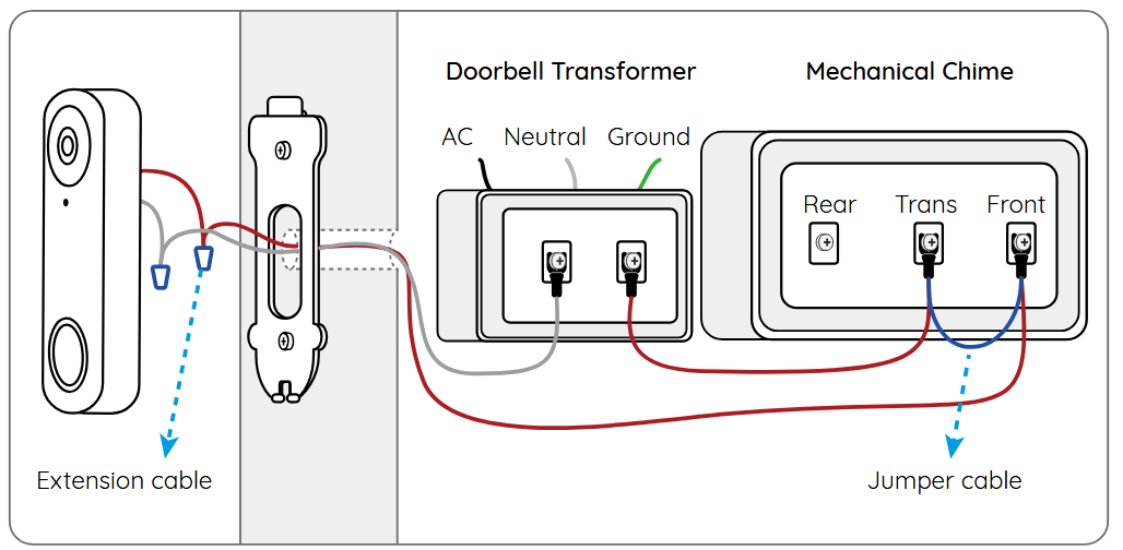 If you look a the documentation, the answer is… maybe. It depends on the electrical setup of your existing door chime. So I tried it, using the jumper cable provided with the doorbell. Two failed attempts later (one with a constantly running chime, the other with no power), I thought it wasnn’t going to work. I thought the transformer in my chime must not be providing enough power for the doorbell. Helpfully, the documentation’s terminology about the connections and the terminology used by my chime did not match (the following is from the doorbell manual):